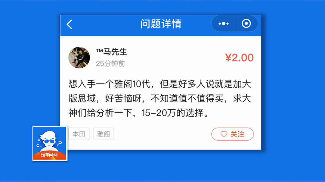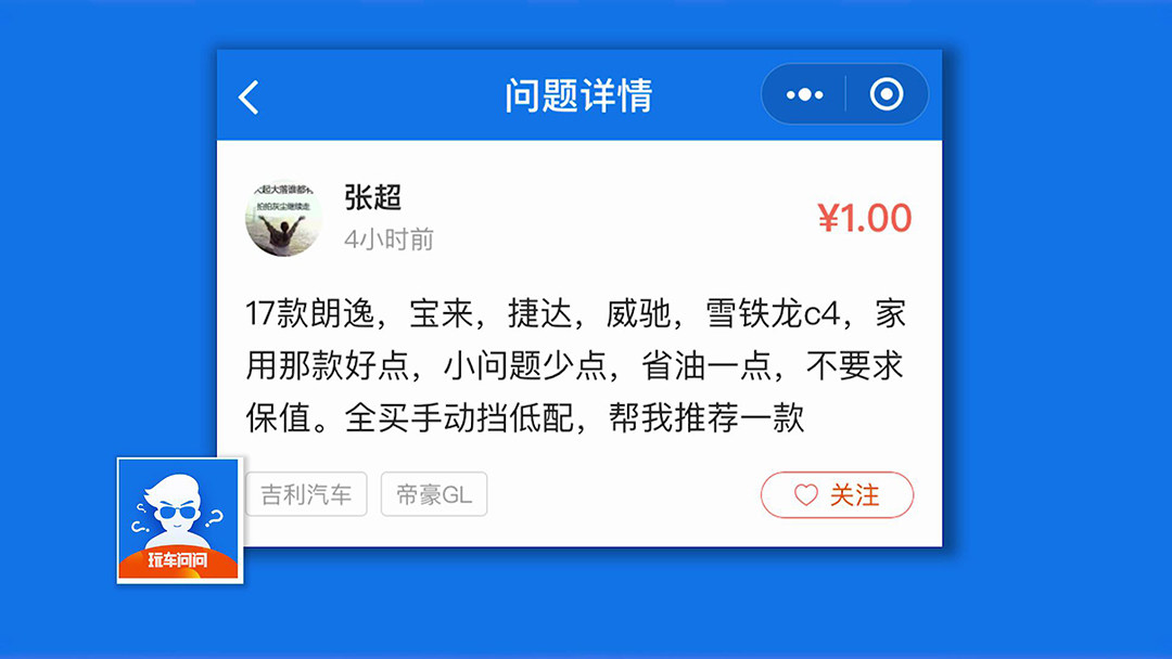 大家好,欢迎收看《玩车问问》的第六期。每周四,我们都会从《玩车问问》的小程序里面挑选出网友近期最关注的问题来给大家做重点的剖析解答。所以大家有什么买车用车方面的问题,可以进入我们的小程序里,会有各种老司机、技师大神为大家解答,也有机会被精选到我们这个节目上。上一期我们和大家解答了关于关于轮胎的小知识,可以回顾《存款1-1000万,如何买到最适合自己的车?》。