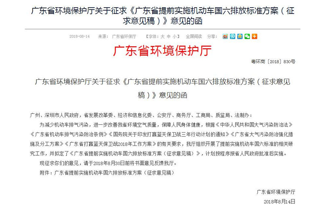 日前,广东省环境保护厅发布了一则《广东省提前实施机动车国六排放标准方案(征求意见稿)》的征求意见函,计划自2019年1月1日起正式实施国六排放标准,如果政策最终顺利落地,加上之前北京市、天津市、河北省等8个省市,明年将有9个省市提前进入国六时代。剩余大部队最慢会在2020年1月1日与9省市会合。