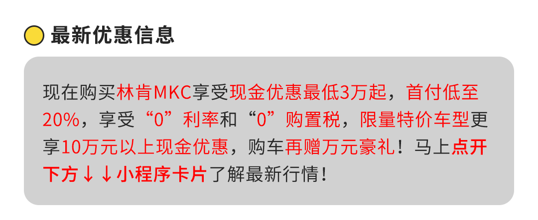适合人群:如果您很喜欢美式复古的外观内饰,同时又很注重乘坐舒适性,那么林肯MKC就很适合您!