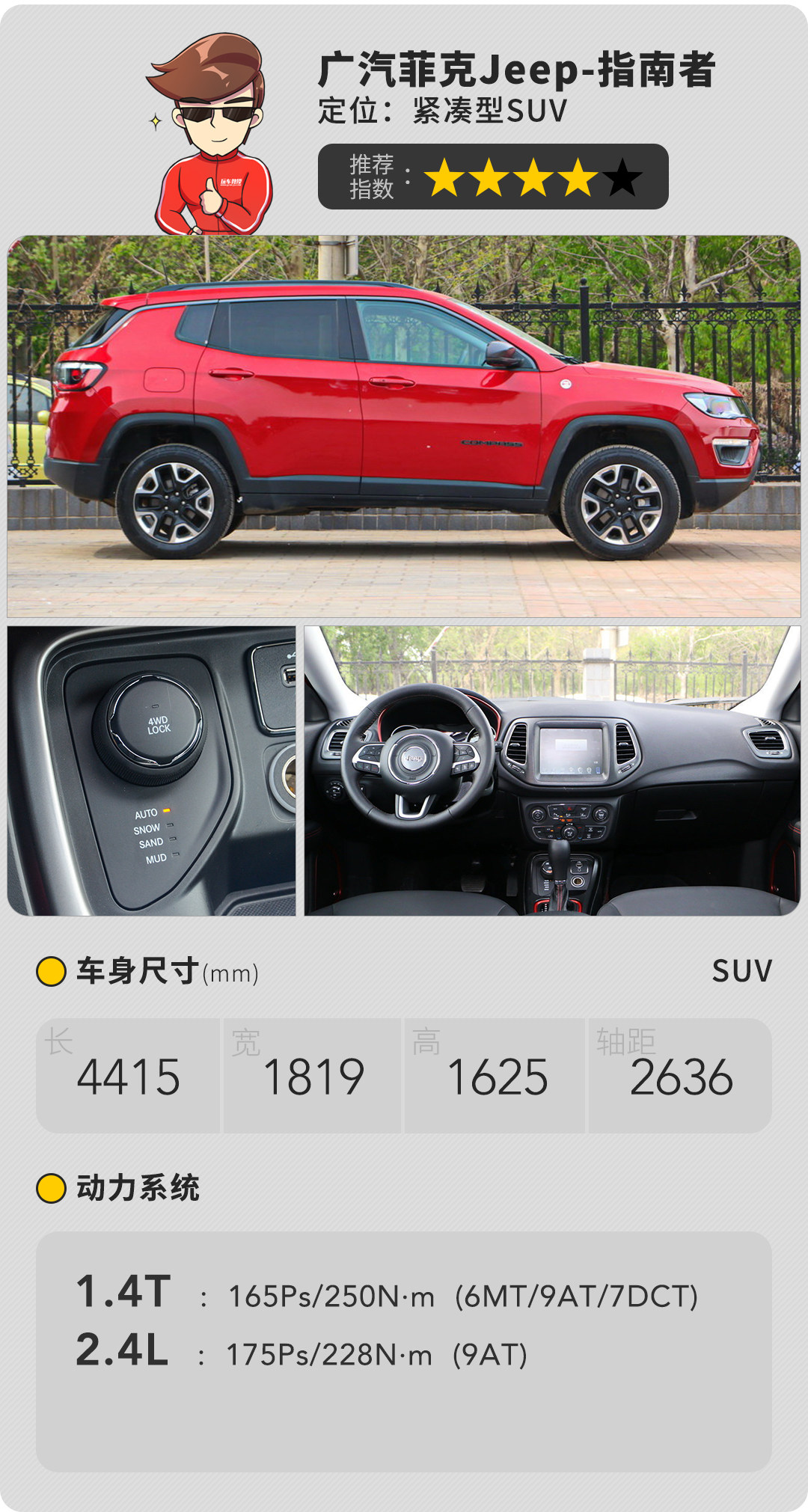 如果阁下对大众探歌的越野性能依然表示不满意,不妨了解一下这款不怎么像“城市SUV”的SUV。它拥有Jeep 4x4 SUV智能科技体系,而且利用Multi-Air2电子液压气门正时升程全时可变技术以及后轴智能适时四驱系统,能为Jeep提供强劲动力的同时,也能保证不俗的燃油经济性,对于年轻人来说,既能享受激情,也能相对不受油价带来的困扰。
