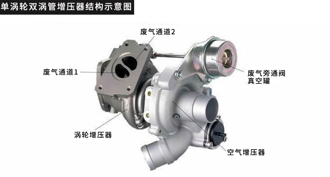 如图所示,双涡流增压有两个相互独立的排气,涡轮增压器交替受到前后两股气体的带动,能更快达到所需正压带动叶片转动,涡轮迟滞大大减小;第二由于排气之间是相互独立的,一个气缸的排气并不会影响别的气缸(单涡流由于所有排气歧管接在一起,所以排气流会互相影响),从而使每个气缸的排气效率都达到最佳,发动机效率也因此提高。