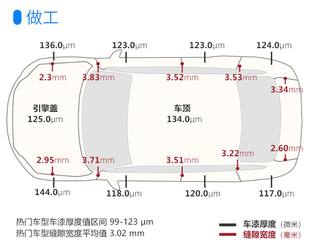 而ES的漆面厚度,基本都在120μm以上,同时各处喷涂也更为均匀,钣金缝隙同样,误差被控制在了小范围内波动。