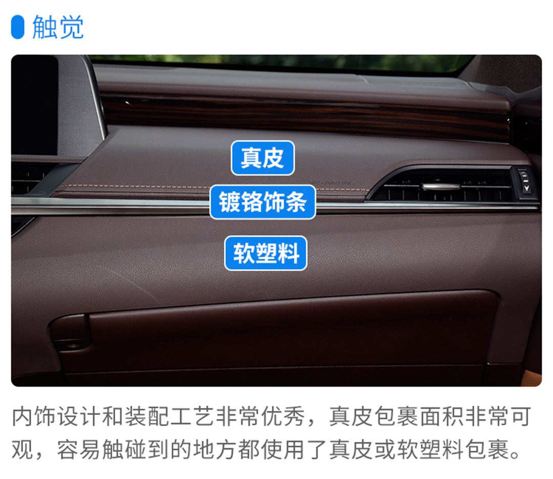 谈论设计之余,我们还是更应该把焦点放在用料上。凯美瑞车内的用料不廉价,但当然也算不上非常高级,软性材质、高亮拉丝维饰板、仿木纹饰板和皮革的搭配,符合它这个级别车型定位的标准。