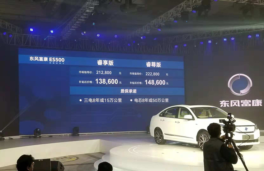 作为曾经叱咤车坛的一代神车,富康没落一段时间后以新能源的身份从新回到市场,并被命名为富康ES500,于11月9日正式上市,共推出两款车型,售价区间为13.86-14.86万元(补贴后)。新车基于风神A60 EV打造,车身尺寸为4680mm/1720mm/1530mm,轴距为2700mm。新增的细节设计,封闭式格栅和各种新标识等,使它的新能源身份更为显著。内饰部分以一套比较传统的设计,加以蓝色点缀,同样强调了新能源的身份。东风富康ES500搭载了宁德时代新能源科技股份有限公司生产的三元锂电池,电机最大功率为122Ps(90kW),最高时速可达145km/h。官宣综合续航里程为351km,等速续航里程超过500km。