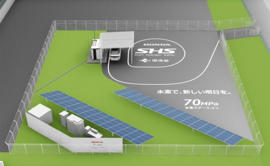 这里我们举本田的70MPa高压电解水制氢站来对比中石化油-氢混建站之间的劣势,本田这个加氢站只需6平方米,完全采用太阳能发电,不需要用到压缩机。这样看起来本田这个发电站好像很好,但它24小时内只能产生2.5Kg的氢气,储存容量为18Kg。一辆本田clarity(本田氢燃料电池汽车,续航里程为750Km)氢气罐的容量为5Kg,也就是一个氢气站24小时的制氢量还不足以加满一辆clarity。先不考虑有无太阳,一座城市需要多少这样的加氢站才能满足氢燃料电池汽车的使用,这样看来中石化的混建站真的好太多了。