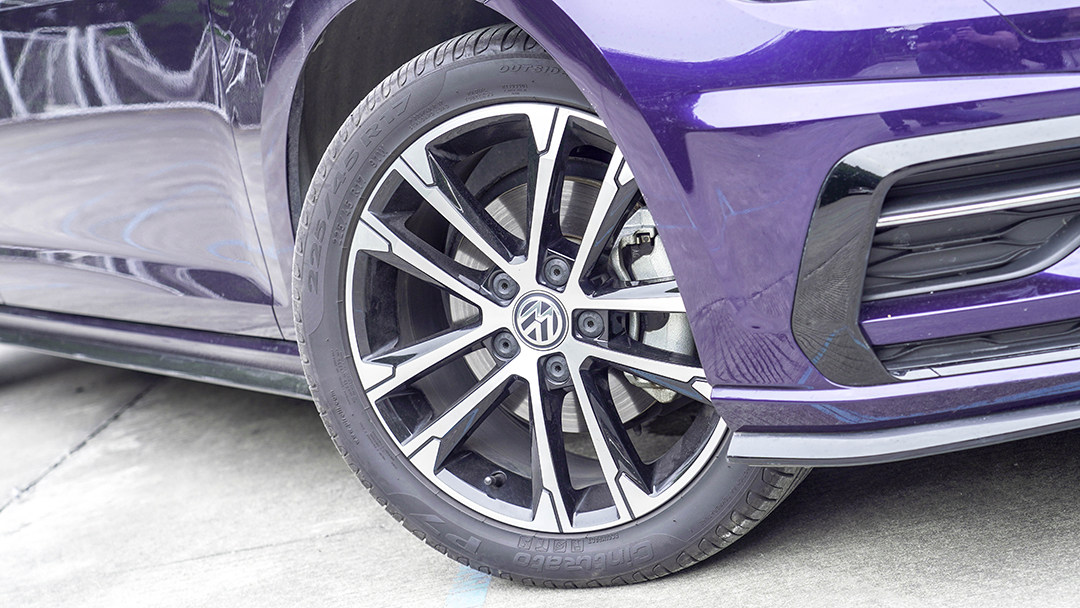 先说说静态方面,高尔夫R-Line的外观和普通的高尔夫并没有非常明显的分别。除了R-Line章和特别的紫色,很难让人看出运动版的特别身份。同样的,内饰也就更换了一个运动型方向盘和金属踏板。就单纯这些简单的装饰,很难让人感觉有特别运动的氛围。