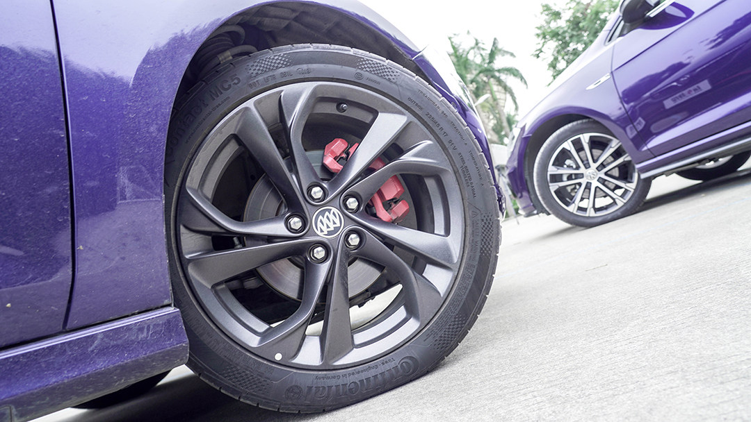 威朗GS在外观内饰上则和普通版有更大的分别。譬如整车包围就有GS极具标识性的獠牙设计。刹车卡钳也漆成红色。加上更运动的17寸轮毂设计和225宽的轮胎,还是能让人一眼看出和普通版的分别。而内饰则有仿碳纤维的饰板、Alcantara的运动座椅和红色的装饰条。在这些额外的运动性装饰下,比普通的威朗更显示出一些运动的味道。