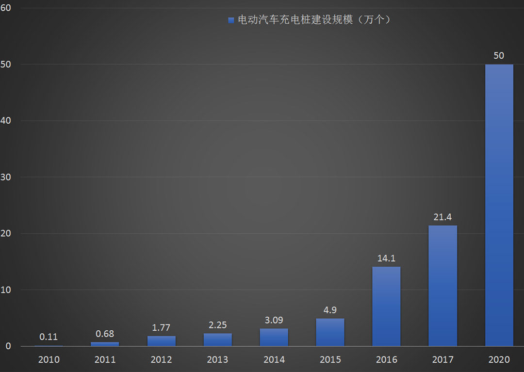 不仅是在电车价格上有补贴,国家还对充电桩进行了补贴。大气污染治理重点区域和重点省市的一类地区中央财政合计基础补贴 5.3 亿元,中部省份等二类地区基础补贴 3.5 亿元,其他地区基础补贴约 2 亿元。鼓励个人自建充电桩,一次性补贴600元。截止2017年底,目前国内共有21万个公共充电桩,比2010年的1千来个都不知道翻了多少倍。根据《电动汽车充电基础设施发展指南(2015-2020)》中的内容,到2020年我国分散式充电桩超过 480 万个(公共充电桩 50 万个,私人充电桩 430 万个),以满足全国500 万辆电动汽车充电需求。从这些政策来看国家真的是不余余力来发展新能源汽车。