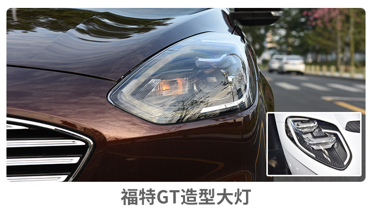 福特新福睿斯的大灯造型与福特GT略为相似,灯源从卤素变成了氙气,而且增加了透镜。