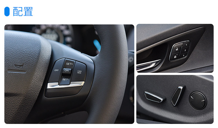 这台顶配的福睿斯配置异常丰富,例如:电动座椅、腰部支撑、后视镜记忆等功能在这个级别只有福睿斯才有。除此之外,福睿斯还有定速巡航、电动折叠后视镜、独立式胎压监测。