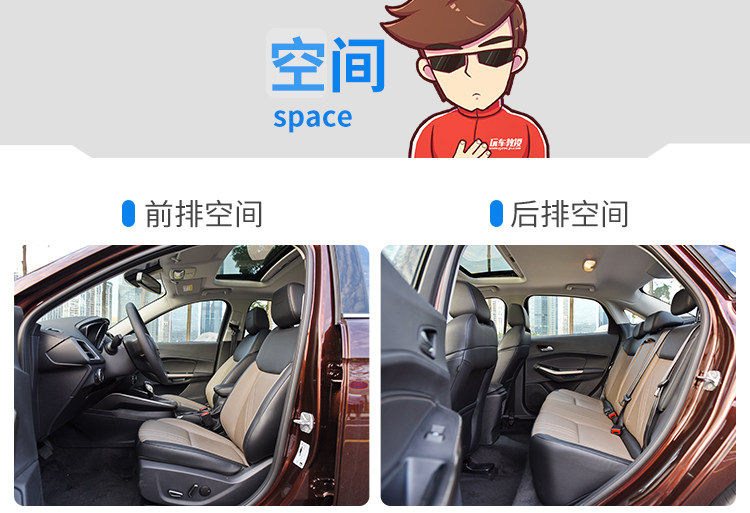 为了充分挖掘车内乘坐空间,福睿斯对前排椅背和后排头顶都做了偷空处理。以173cm的体验者坐进福睿斯,前排有3指的头部空间,后排有两拳有余的腿部空间,和2指的头部空间。后排空间的表现在这个级别来说非常亮眼。