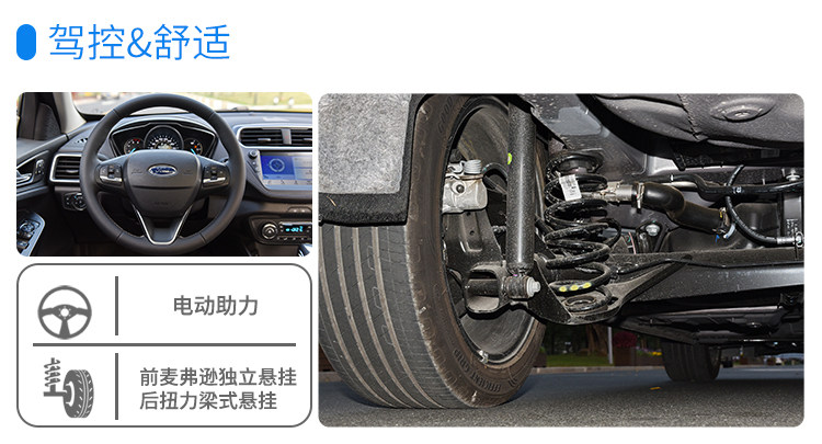 新福睿斯采用电动助力转向,在悬架上采用了该级别主流的前麦弗逊独立悬挂和后扭力梁非独立悬挂。