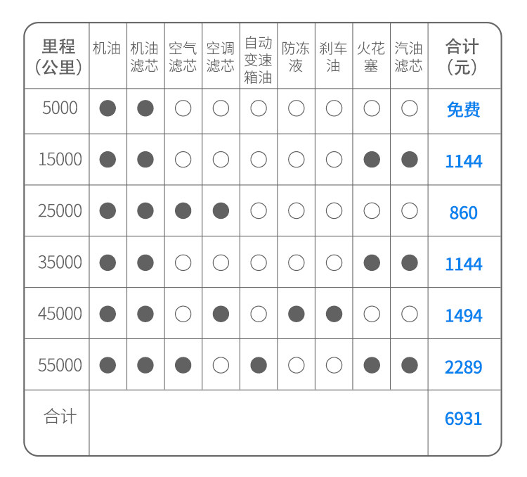 新福睿斯的5000公里首保,以后每隔10000公里保养一次。虽然小保养的价格看起来稍贵,但是算下来其实也没贵多少。