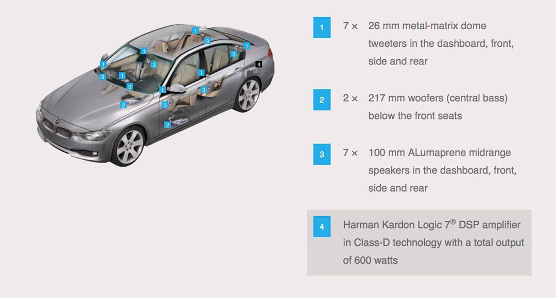 宝马7系等高端豪华车身上使用的哈曼卡顿Logic7音响系统是哈曼卡顿的拳头汽车产品,Logic7不是具体的某一个喇叭或者主机,Logic7是一种特殊的数字信号处理模式,用来处理双声道立体声信号和多声道多媒体信号,Logic7的目的就是为了让车内所有的人员尽可能获得高保真的原声体验。