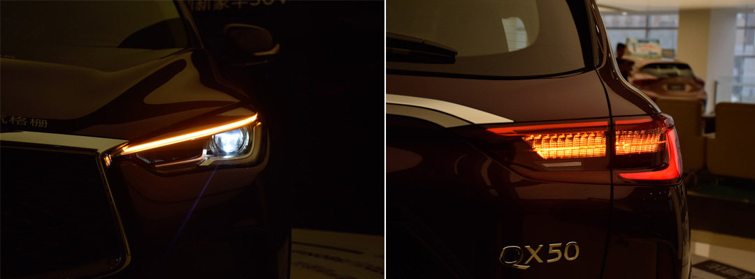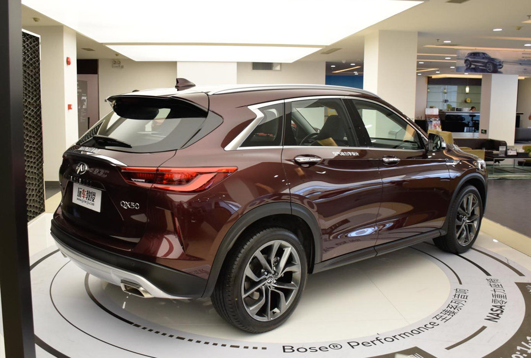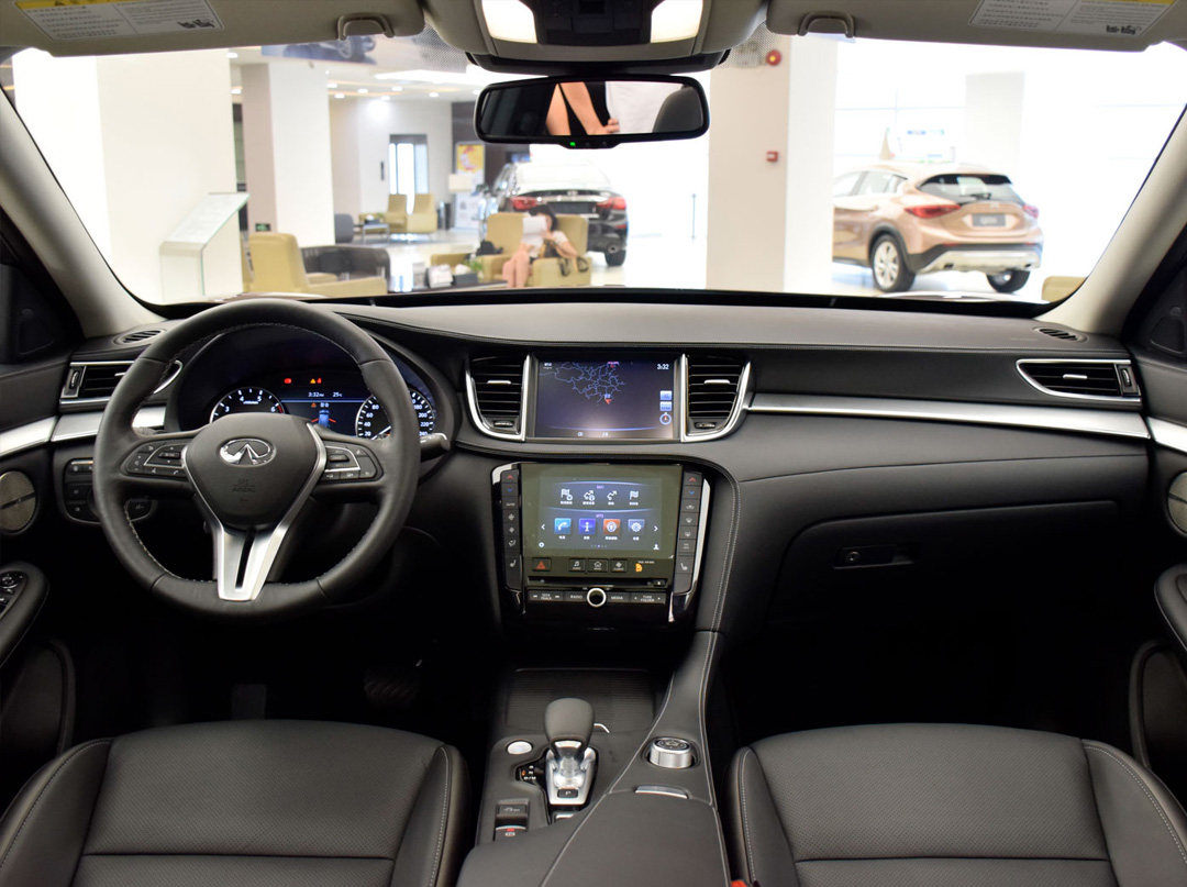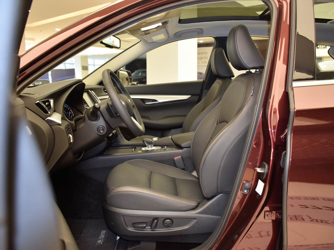 英菲尼迪QX50拥有着非常圆润饱满的车身设计,造型的大气感很不错也不失个性!内饰的质感豪华,大面积的软包材质提升了档次感。