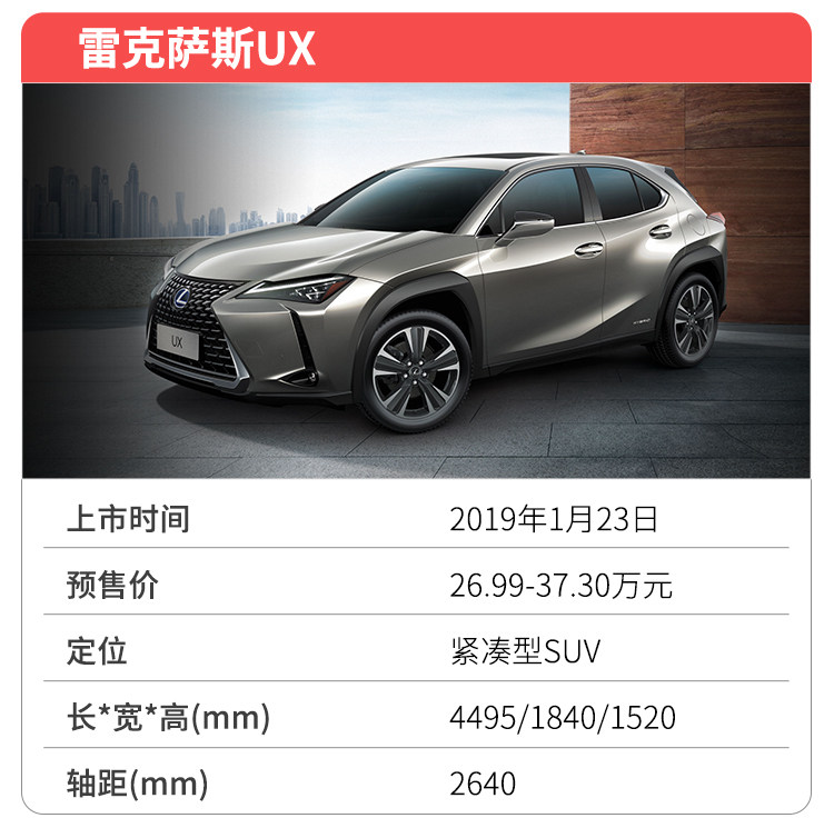 教授点评:在正式上市前一个月,雷克萨斯UX已公布了一个颇具诚意的预售价,再次引起强烈的关注。27万元不到的价格,就能拥有雷克萨斯最新的设计,以及动感十足的车身姿态。尽管新车搭载的是2.0L发动机,最大功率170马力,再搭配CVT变速箱,看着比较佛系,与外观的犀利设计看着很不相符;但是胜在技术先进,最大热效率可达41%,品质值得信赖。还有雷克萨斯UX有着全进口身份,品质上也有比较高的保障。