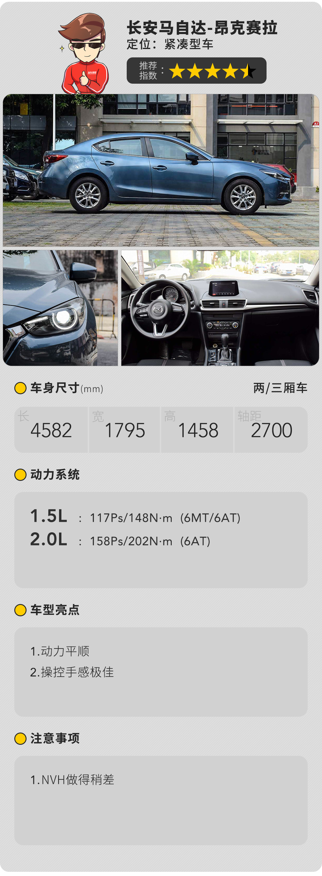 一款公认的好车,也是一款叫好不叫座的车型。虽然如此,但是一说到操控,自然逃不了素有“日本宝马”之称的马自达,昂克赛拉即使里面小巧好开的代表。在这个涡轮发动机当道的年代,还有车企依然使用自然吸气发动机,实在有些我行我素,但自然吸气的平顺配合上绝佳的操控,实在是会让人开上瘾。
