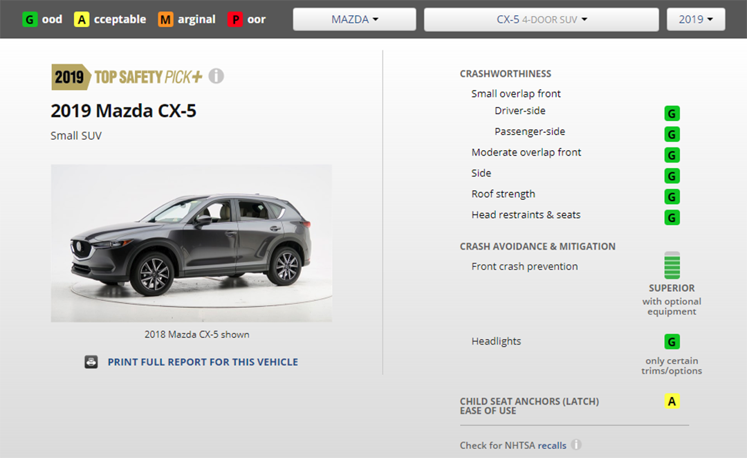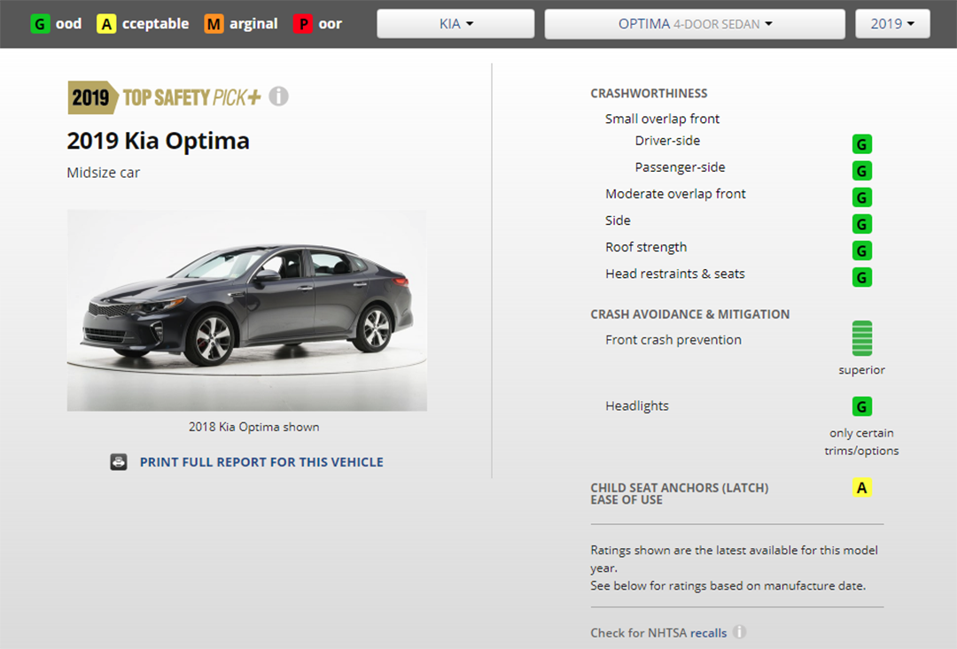 更让它引起厂家们不满的是...IIHS一般选择最低配车型进行测试。但无论怎样说,它始终是一家影响力强大、受众范围广的机构,在此“淫威”之下厂家们也只能是屈服好好在安全领域上打磨。IIHS在最近也发布了2019年最佳安全车型榜单,以下车型在2018年测试中均获得了TSP+成绩,并且国内也能买到。