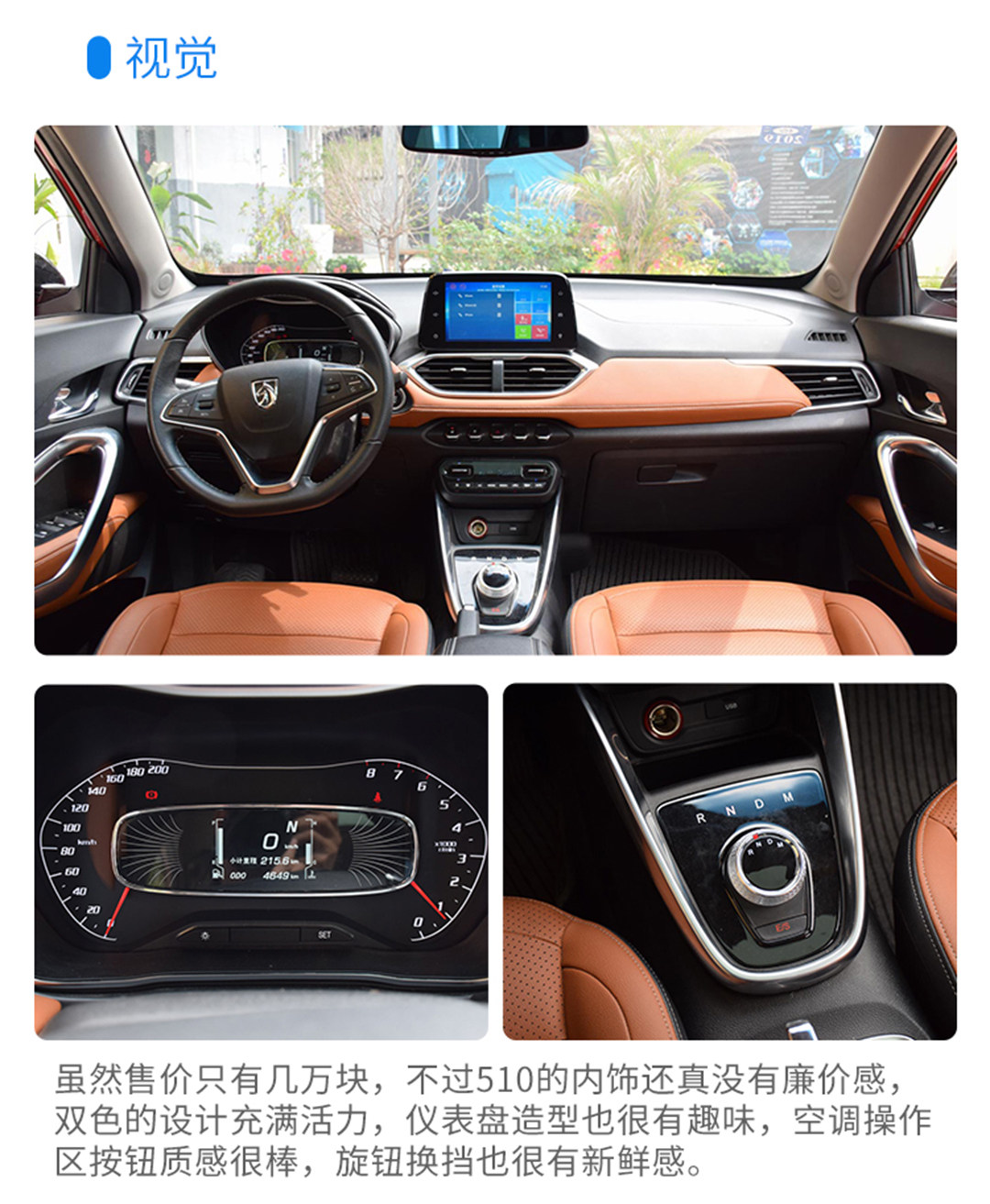 于配置部分,510以不贵的价格提供了还算丰富的配置,唯一需要留意的是,车系标配配置的水平不算高,电动折叠后视镜和车身稳定系统一类的都不是标配,不过对于它便宜的起售价来说也无可厚非了。