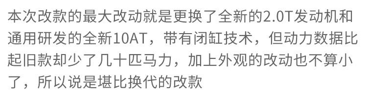全新打造的10AT变速箱一改通用以往的毛病,中低档位比起旧款是平顺了很多很多(但比不上宝马的8AT),尤其是中高档的换挡,换挡极其的顺,已经可以忽略变速箱的存在了,而且整体调校也变得舒适了,即使是用拨片或者是kick down强制降档,车内的冲击感都非常小的,就越来越有旗舰身份的气度和体验。