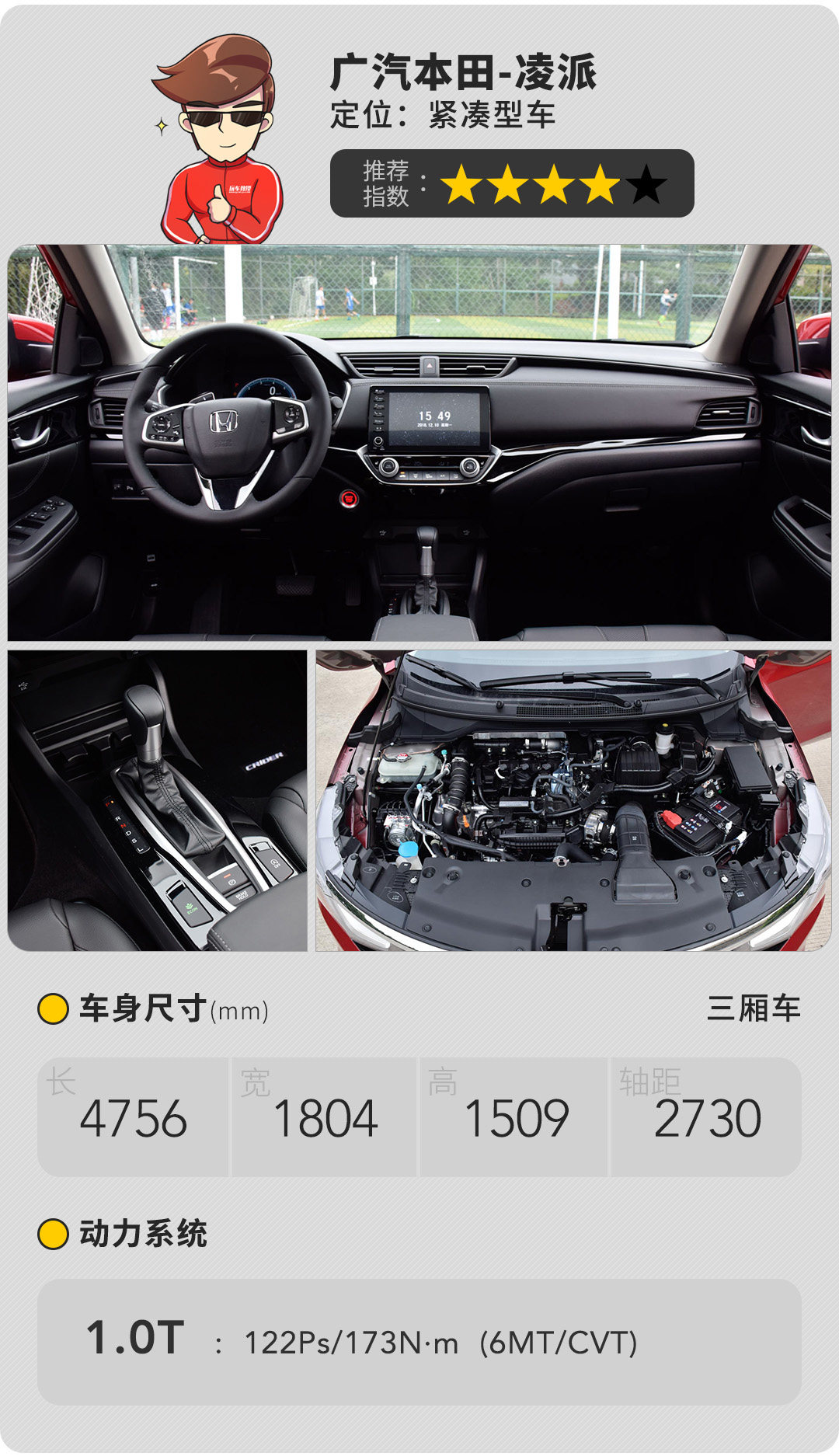 对于这台中国特供的凌派来说,教授较为推荐的车型是180 turbo CVT领先版,作为车系的次顶配车型,领先版装备的本田超感系统内含同级别领先的自适应巡航、定速巡航、车道偏离预警等主动安全配置,安全配置较为齐全,此外,带手机互联的8英寸中控大屏与更多的喇叭数量提升了车辆的豪华配置。因此作为家用车来说,180 turbo CVT领先版值得一看。