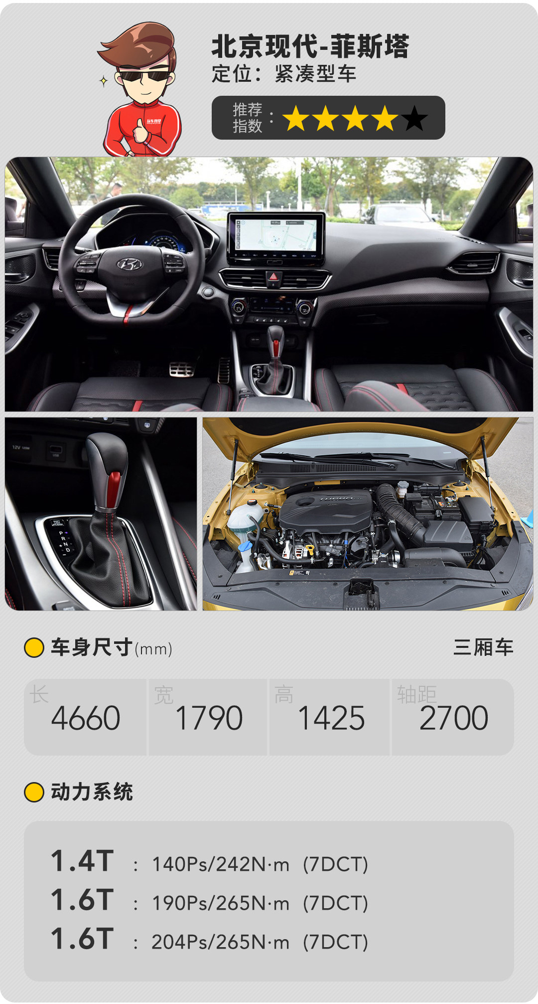 拥有运动外观的菲斯塔内饰同样有看头,平底式方向盘、立体感十足的中控台、碳纤花纹的饰板等细节营造出一种运动感。作为中国特供车的菲斯塔拥有2700mm的轴距,后排空间表现属同级主流水平,而与同样以运动为卖点的竞争对手相比,菲斯塔的后排空间可圈可点。此外,菲斯塔的动力以及底盘表现十分符合其运动型轿车定位。