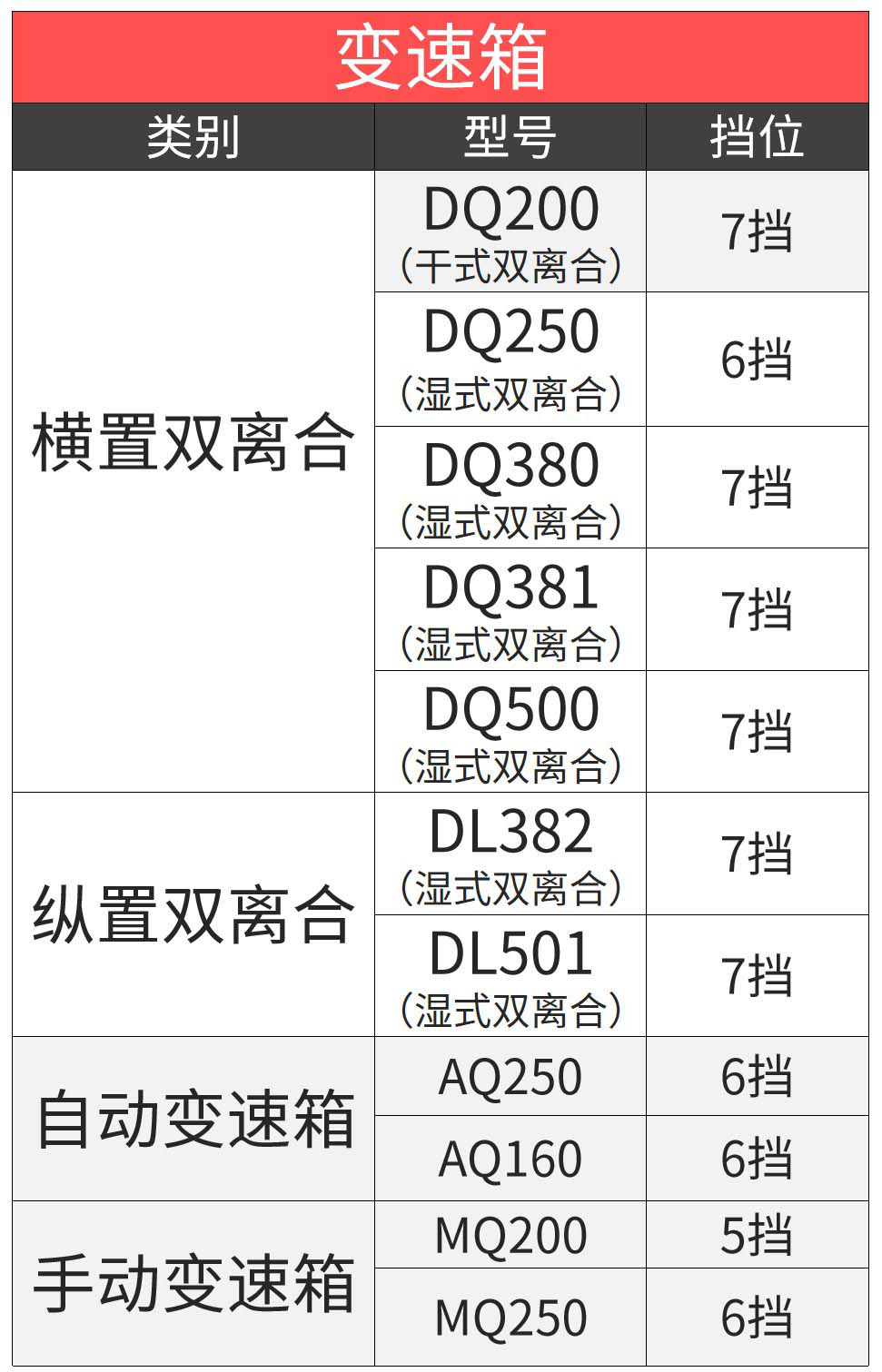 大众集团目前在售车型配有12款变速箱,其中大部分都是双离合,这12款变速箱中除AQ250和AQ160外,其余都是大众自己生产。双离合变速箱中,除DL501外其余都是国产,由此可见大众的国产化率是相当高的。