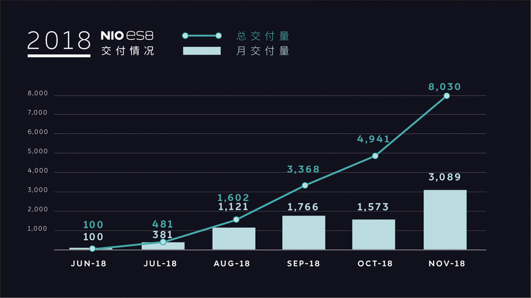 在美国时间3月5日,蔚来汽车公布了2018年未经审计的财务报告,数据表明,蔚来2018年年度总收入为49.51亿元,其中汽车销售总额为38.53亿元占总收入98%;2018年年度净亏损为96.39亿元人民币,同比增长92%;归属于公司股东净亏损为233.28亿元,同比增长208.5%。加上2016年亏损25.73亿元,2017年亏损50.21亿元,蔚来近三年来累计亏损约在172.33亿元。2018年蔚来全年ES8交付数量为11348辆,但2019年1月和2月的交付量远远低于2018年12月的3318辆。