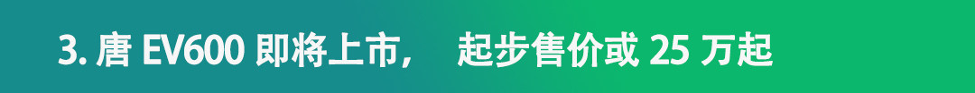 新车唐EV600将搭载NCM622电芯,电池组能量密度161Wh/kg,配备智能电池温度控制系统确保电池在极端温度环境可维持在高效能工作区。此外,电池组支持80kW充电功率,30分钟内可将电池电量由0%充至80%,NEDC工况下,可分别为5座、7座车提供500公里与520公里的续航里程。