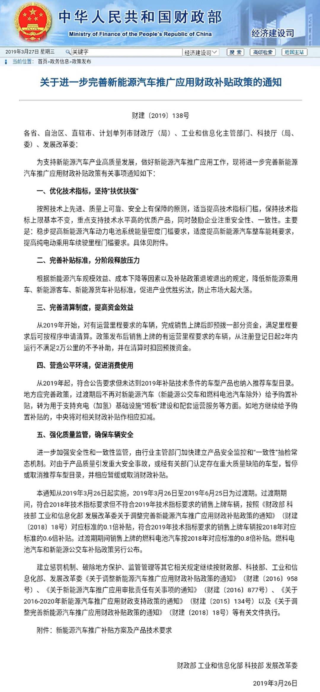 意识到问题所在的相关部门,决定重拳出击。2019年3月26日,牵动着行业神经的2019年补贴新政冒着寒意出炉。弹指一挥间,新能源行业动荡不已。
