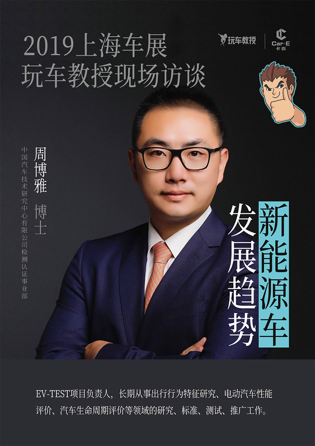 空谈无益,专访走起。2019年4月16日,教授有幸于上海车展媒体日邀请EV-TEST项目负责人周博雅博士就关于国内新能源现状进行专访。