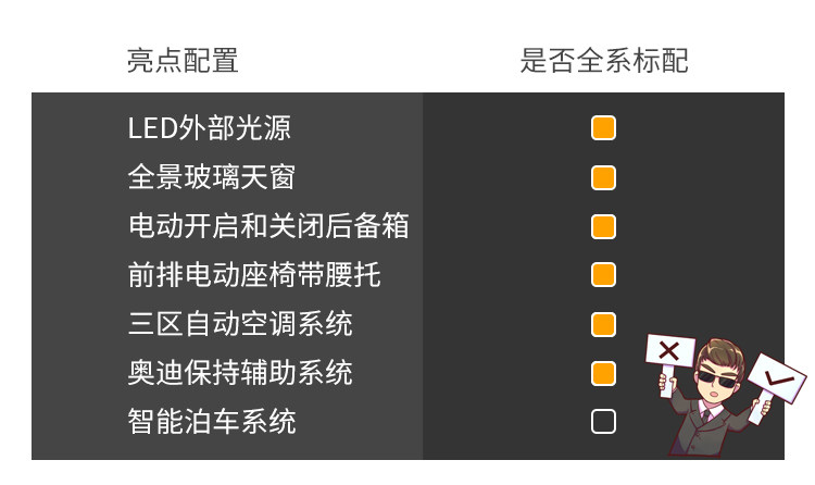 此外,奥迪还多了一个“灯厂”的美名,本次测试车辆选装了矩阵式LED大灯并且LED后尾灯带动态转向灯。