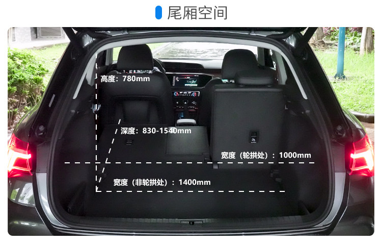 全新奥迪Q3的车位行李箱空间既大又规整,后排座椅支撑4/2/4分别放到并且放倒后较为平整。