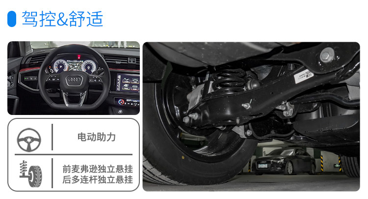 全新奥迪Q3是目前市场上的同级别车型里唯一全系标配渐进式转向系统的车型,中位附近手感轻盈,阻尼会随着转向角度的增加而增加,