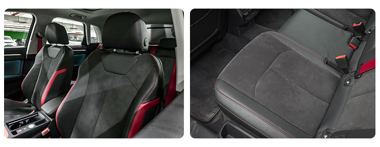 值一提的是本次测试车型选装了阿尔卡塔纳与米莱诺(Milano)真皮组合座椅面料。阿尔卡塔纳是一种看上去像是翻皮的合成面料,将之应用在靠背与坐垫主要承托身体的部分,而头枕、靠背与坐垫的两翼这些负责支撑的部分则采用了米莱诺(Milano)真皮。