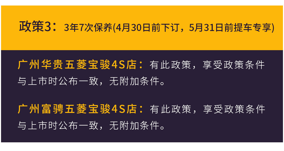 教授分析:与置换补贴一样,保养政策同属基本操作,但新宝骏RS-5的保养优惠似乎有比较多的限制条件,必须在4月30日前下订,5月31日前提车,对于一款刚上市不久的新车而言能满足该条件的用户似乎也不多,不过,教授询问相关销售人员时得知,该政策有效期到5月31日,未来6月或之后有可能会有新政策,新政策的内容以及相关条件仍有待公布。