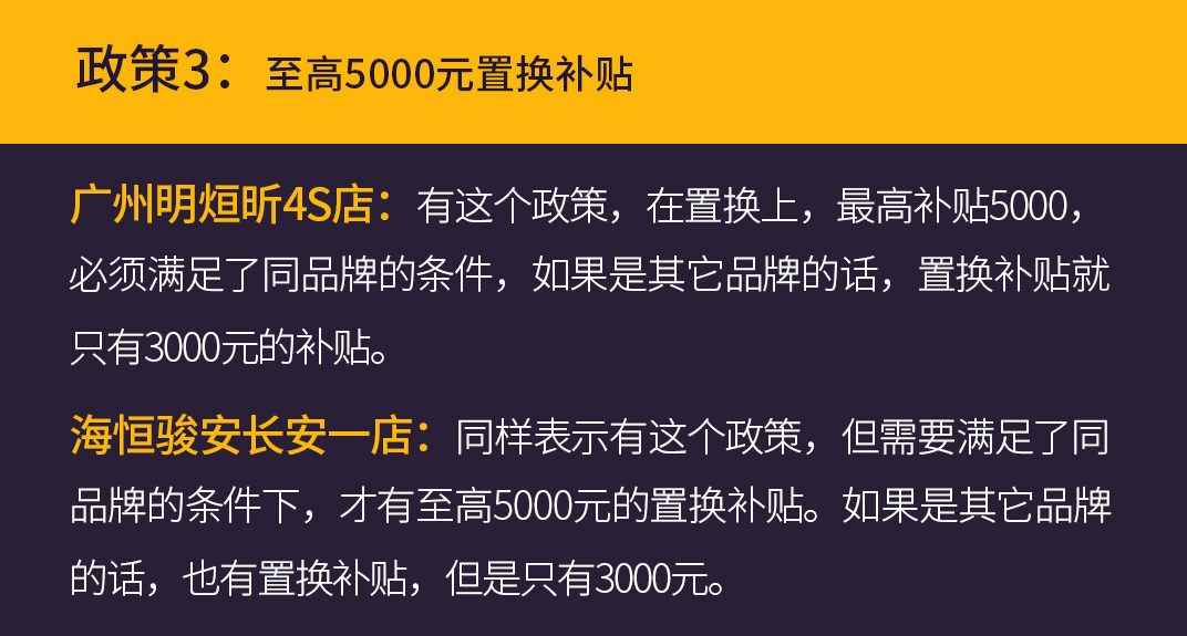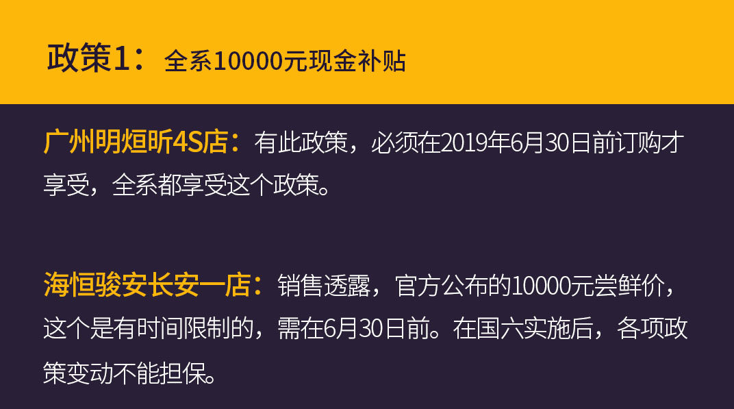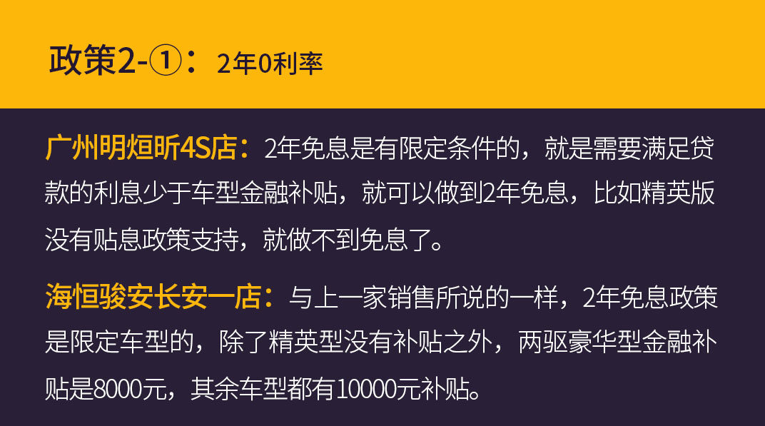 经销商表示,官方给出的购车政策,基本都是有的。而在实际的调查中,也都基本做到,只是具体方面还有待商讨。在金融贴息上,精英版本没有贴息补贴,这个就不应该。虽然做不到10000元甚至8000元的补贴,但如果有着5000元左右的补贴,对于消费者也是利好的,毕竟精英版的起售价更受消费者的好评。而在置换补贴中,同品牌的置换情况会比较少,但3000元的置换补贴也非常贴心,总好过没有。而值得表扬的是,全系都有1万的现金优惠,这大大的降低了购车的整体费用。