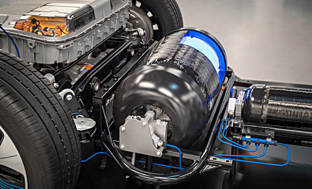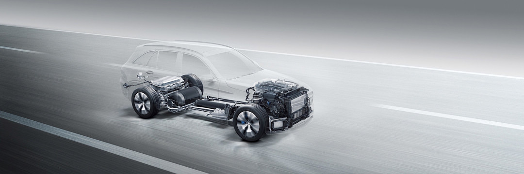 既然明明为GLC F-CELL理所当然使用氢燃料电池技术作为驱动,车身分别有两个碳纤维外壳的储氢罐,其中一个位于机舱内部,而另外一个位于后排座椅下方。发动机机罩下方的是一个氢燃料电池,奔驰工程师将一套氢燃料电池最大程度利用起传统燃油车的发动机舱,甚至氢燃料电池的固定位置都跟内燃机一致。