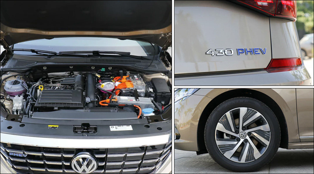 帕萨特PHEV载12.1kWh电池组,纯电续航里程为63km。整体设计只是在一些细节上和帕萨特有所不同,较有特色的是它的车尾右下角印有430PHEV的标识,很唬人!但它采用的只是1.4TSI汽油发动机与电动机的组合,该系统综合最大功率为155千瓦(210马力),最大扭矩400牛米,可见它的尾标更多是代表着其扭矩信息。