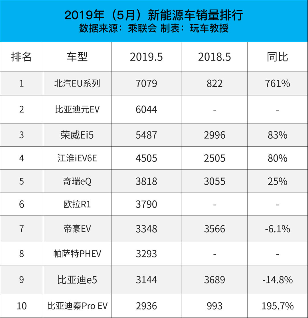 中国汽车流通协会汽车市场研究分会(乘联会)正式公布了5月份新能源车型销量排名。在销量榜单的前十名中,仅1款合资车型入围,其余9款均来自自主品牌!另外,5月份新能源狭义乘用车销量9.4万辆,同比增长1.6%,环比增长9.5%,增长速度有所放缓。教授认为新能源汽车增速放缓,汽车市场进入传统销售淡季是重要原因之一。汽车市场总体销量持续下滑,而新能源车销量略有增长,可见新能源车型的市场潜力有望继续扩大。