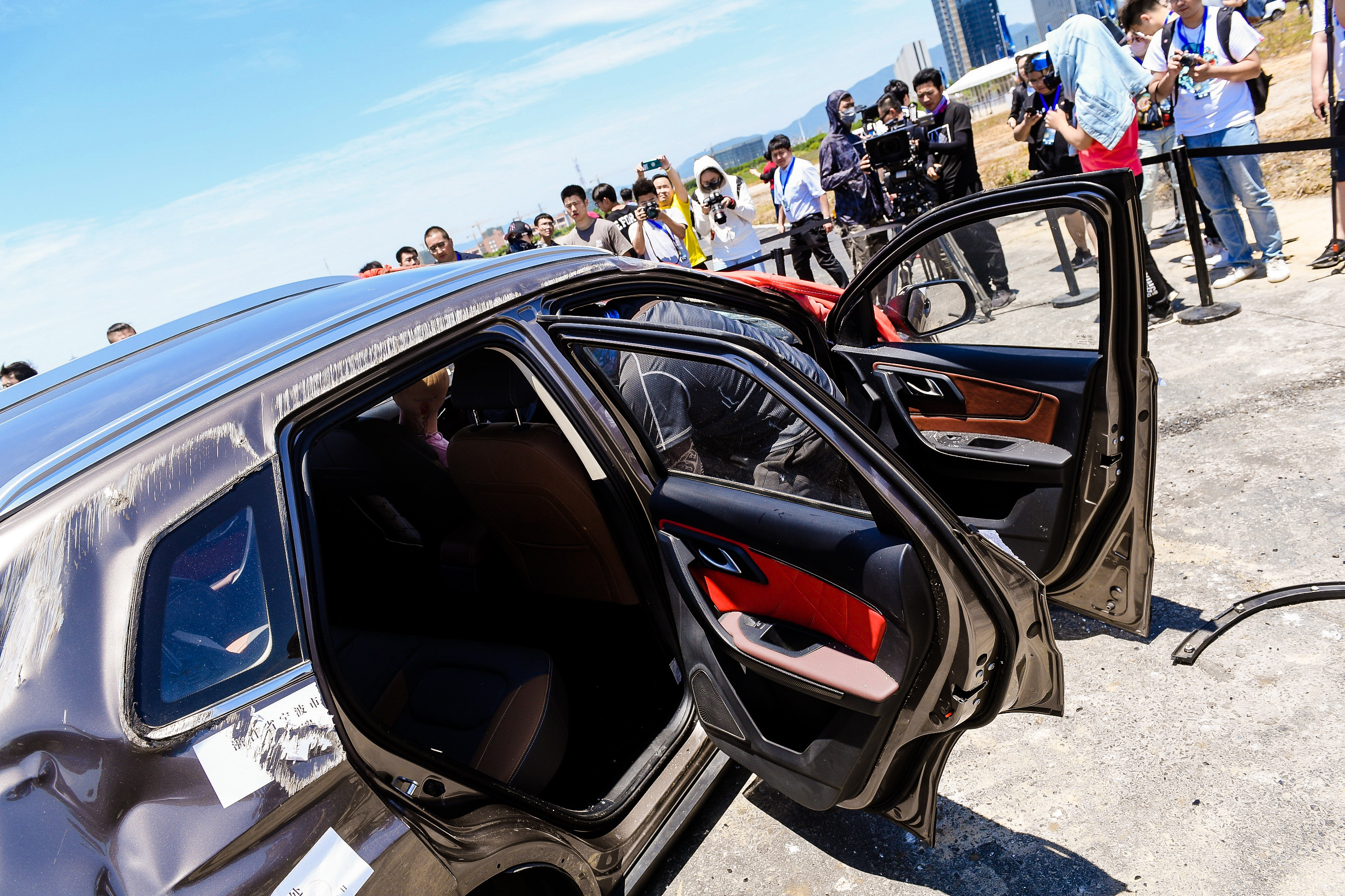 试验结束后,中汽研安全专家现场对车辆进行检测。在经历了严重的撞击和翻滚后,奔腾X40的A、B、C柱均未产生可见变形,四个车门能够从外部顺利打开,为事故的救援提供了良好的条件;乘员舱也保持了很高的完整性,测试假人固定良好,说明车内乘员生存空间良好;油箱未发生泄露,也有效地避免了二次事故的发生。