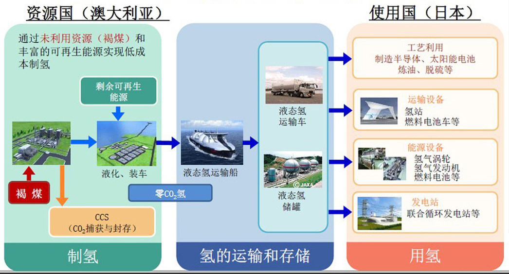 目前,工业制氢有几种方法,天然气、电解水、褐煤、污泥、焦炉气以及电解盐等等。目前可实现大规模制备氢气的方法有三种,其中日本是使用褐煤制氢,从澳大利亚开采的褐煤在当地粉化干燥制备成甲烷后通过高温加热就可以制备出大量的氢气,之后再将氢气成本冷冻液化,方便运输,不过这种方法的缺点在于制备的过程中会有大量的二氧化碳等副产物,但可以通过CCS技术就地封存。