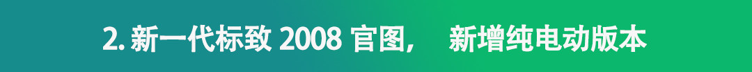柴油机方面,将搭载1.5T柴油发动机,提供BlueHDi 100(100Ps)、BlueHDi 130两种版本,同样匹配6MT或8AT变速箱。敲黑板,本次换代最大革新度当属纯电动版本标致e-2008,电机最大马力136Ps、峰值扭矩260N·m,车辆极速150km/h,官方表示其NEDC续航里程达到430km。