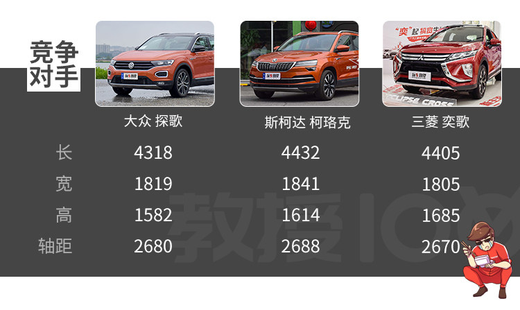 尺寸上,逍客的车身定位是偏小一定的紧凑型SUV,所以它的起步价才13万多,对比竞品,逍客的表现是中规中矩,2646的轴距在竞品当中不算突出。