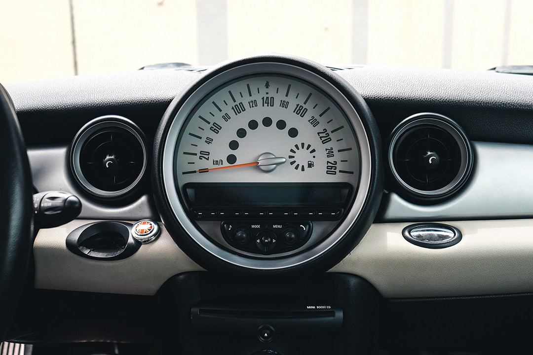 这一台是宝马旗下的第二代MINI,代号为R56。从外观设计方面,它依然保留着经典Mini的圆润,从大灯、后视镜、进气格栅到仪表盘、门把手乃至踏板都采用了圆形或椭圆形的设计。单从视觉效果上看,这一台MINI Cooper确实是非常可爱的。