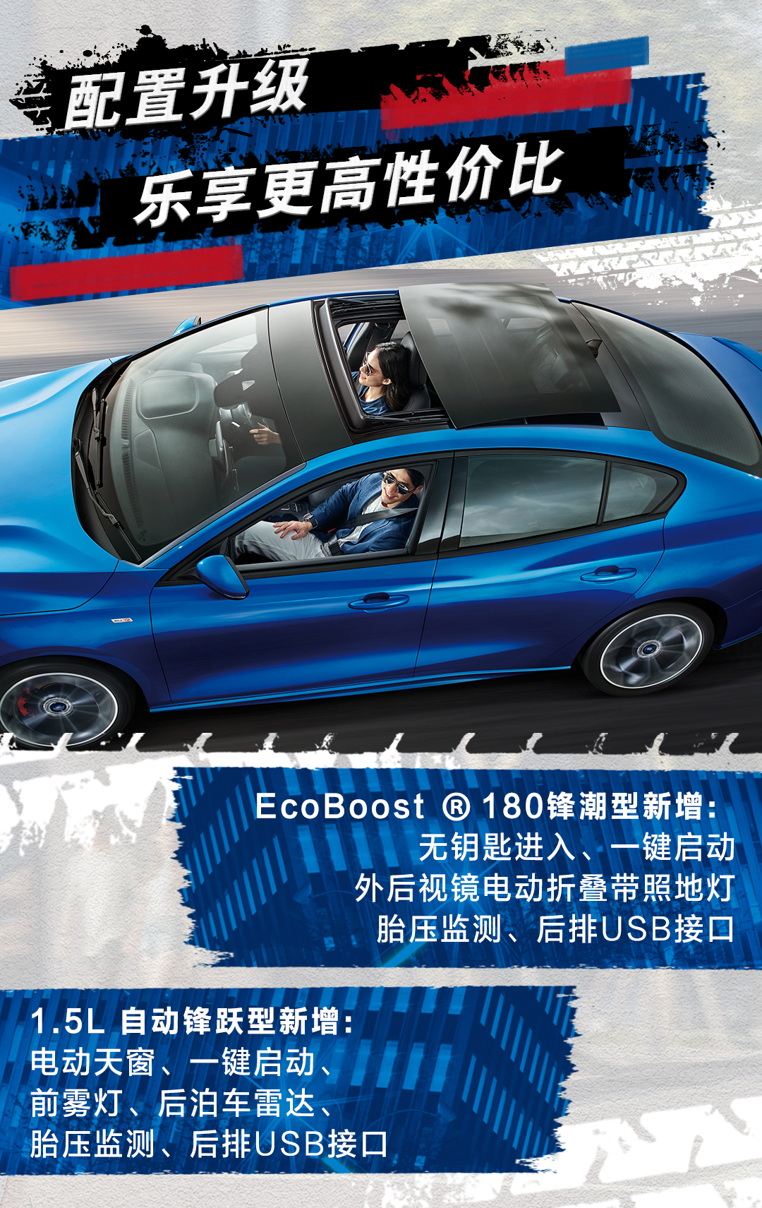 新一代福克斯2020款更加聚焦消费者需求最旺盛的区间,EcoBoost®180锋潮型和1.5L 自动锋跃型除换装运动套件外,在延续之前配置优势的基础上新增多项实用功能,EcoBoost®180锋潮型新增无钥匙进入、一键启动、TPMS胎压监测等,1.5L 自动锋跃型新增大天窗、一键启动、TPMS胎压监测、泊车雷达和皮质方向盘等配置,带来同级最优的产品力和价值感。