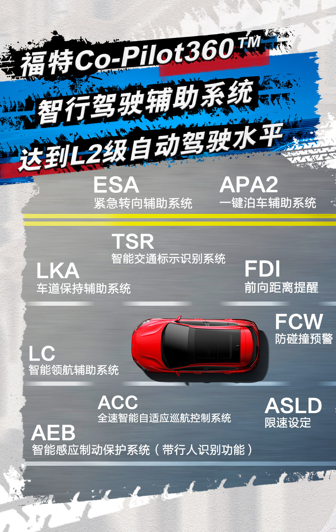 新一代福克斯2020款搭载福特Co-Pilot360™智行驾驶辅助系统,集成10项驾驶辅助功能,达到了L2级自动驾驶水平。福特Co-Pilot360™智行驾驶辅助系统集成了ACC全速智能自适应巡航控制和智能领航辅助系统、一键泊车辅助系统、智能感应制动保护系统(带行人识别功能)和智能交通标志识别等同级领先配置,为消费者带来轻松愉悦、舒享便捷的驾乘体验。