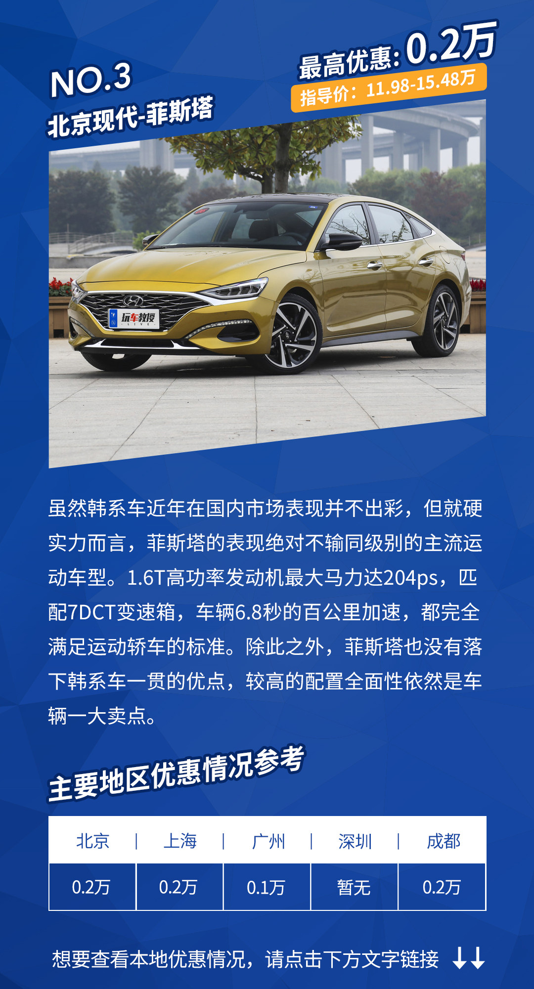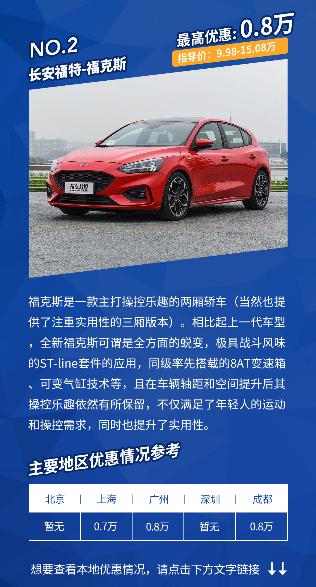 紧凑型轿车当中,除了思域处于常年0优惠,大部分车型都有一定的优惠幅度。