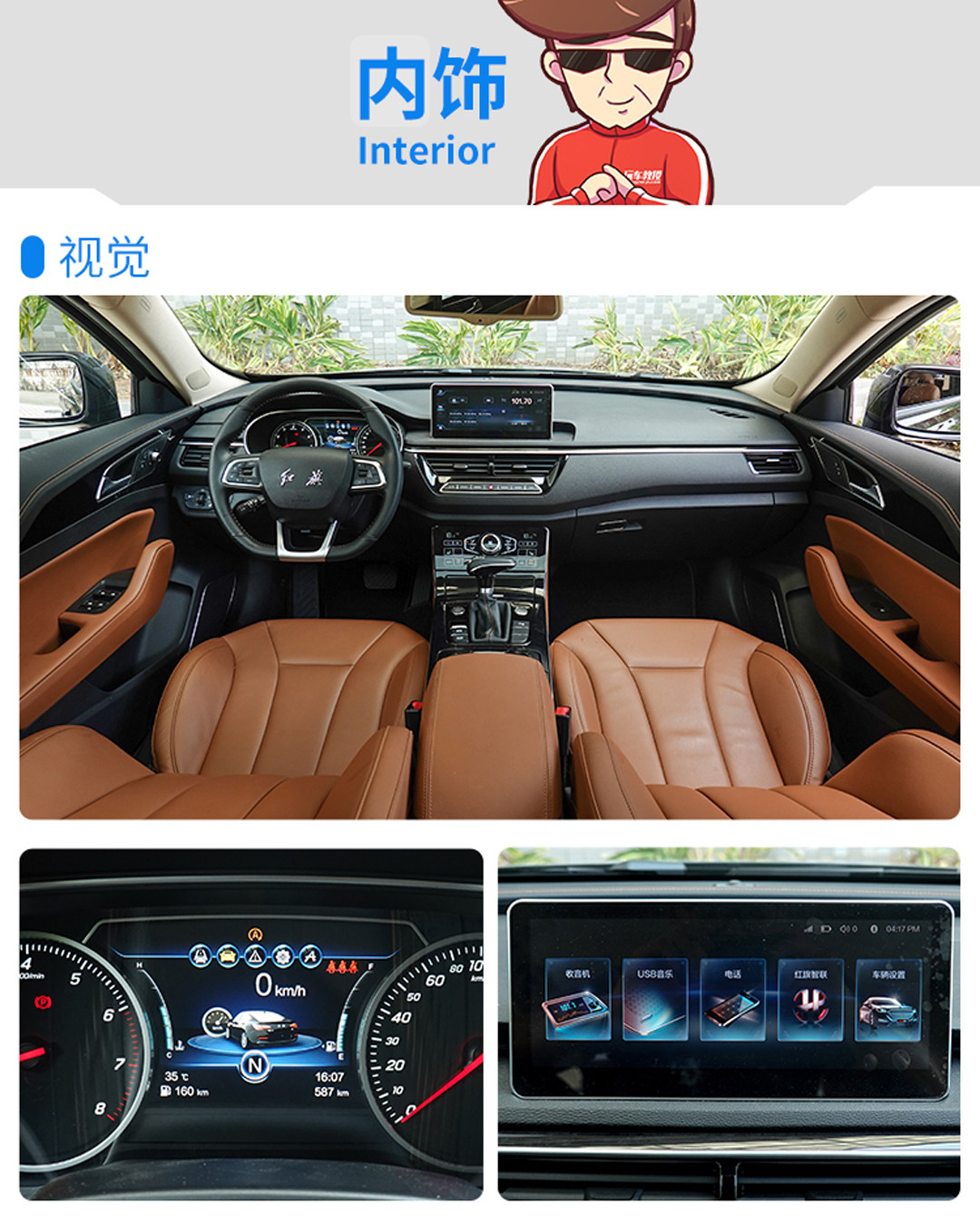 与动感凌厉的外形设计完全背道而驰的是红旗H5采用“T”型对称环抱式设计的内饰,这未免也太过于“一本正经”了。并且内饰的“一本正经”不只是体现设计,还有用料和配色。