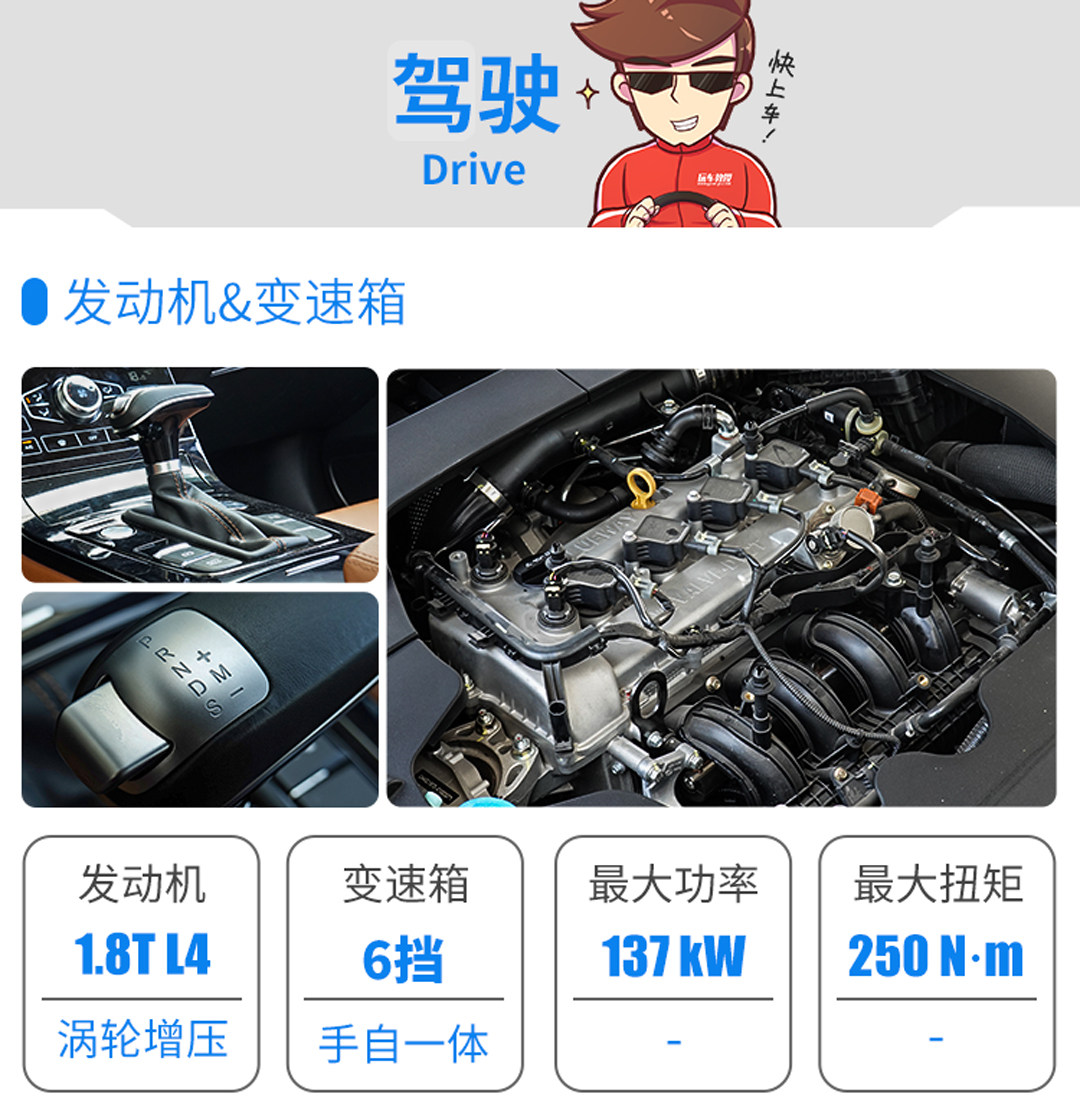 红旗H5搭载由我国专家自主研发的型号为CA4GC18TD-11的涡轮增压直喷发动机,这款完全符合最严苛的国VI排放标准的发动机只需要加注标号为92#的汽油,传动方面匹配“标杆级”的爱信第三代6速手自一体变速器6F25。